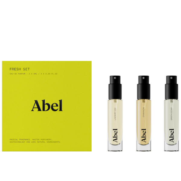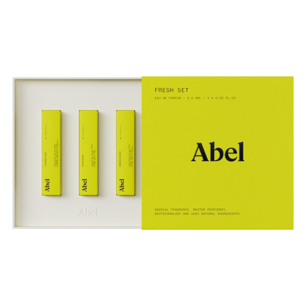 Presented in a deluxe gift box, the Fresh Gift Set features three of Abel’s best-selling, most uplifting fragrances. With citrus, cut grass, and vetiver layered over cool woods and salty nori, this trio evokes sun-drenched mornings, ocean expanses, and ancient forests.