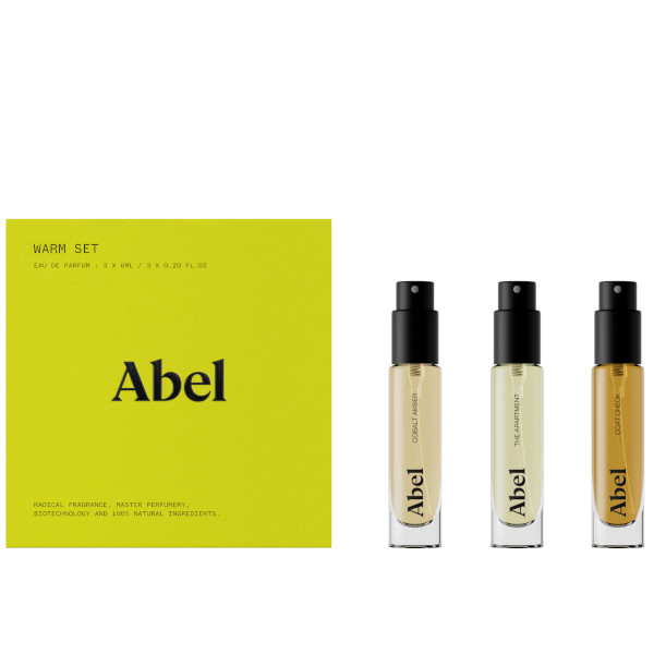 Presented in a deluxe gift box, the Warm Gift Set brings together three of Abel’s most full-bodied, sensual creations. With dark fruits, spice, vanilla, and amber wrapped in a smoky glow, this trio evokes the warmth of candlelit evenings and the allure of nights that stretch on.