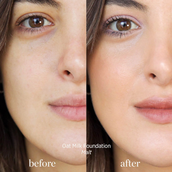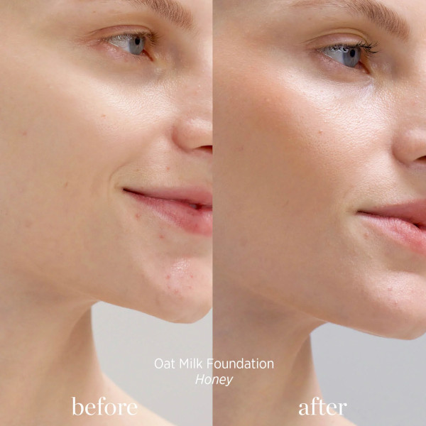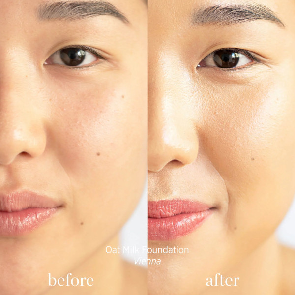 Oat Milk Foundation by Ere Perez is a creamy, non-greasy foundation that hydrates skin and lets it breathe, formulated for medium, buildable coverage and long-lasting wear, and leaving a natural, dewy, seamless finish.