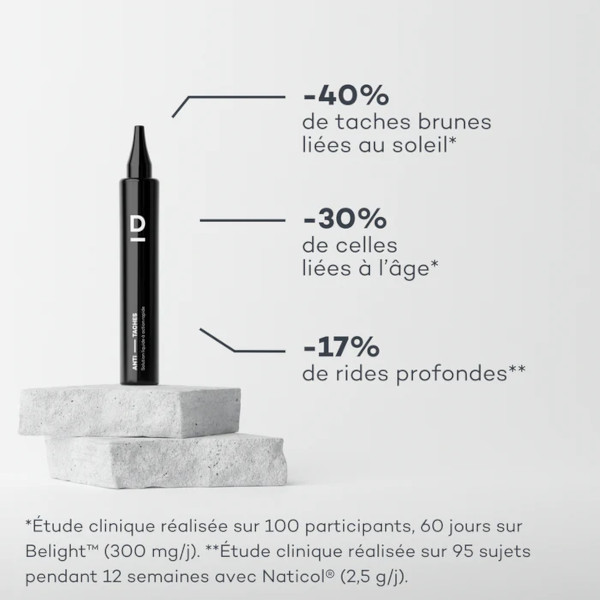 A formula with clinically proven action, both on the reduction of sun spots by 40% and age spots by 30%. These results have been proven under dermatological control.¹