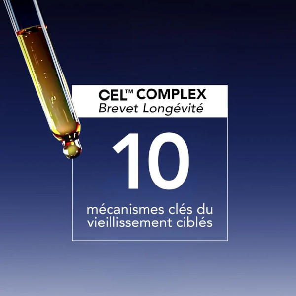 This next-generation serum combines 0.15% encapsulated retinal with progressive release – 11 times more powerful than retinol with outstanding tolerance – and 20% CEL™ Complex, an exclusive epigenetic technology currently under patent.
